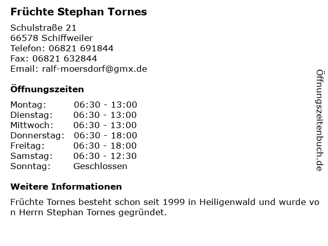 | Öffnungszeiten Früchte Stephan Tornes in Schiffweiler anzeigen | |