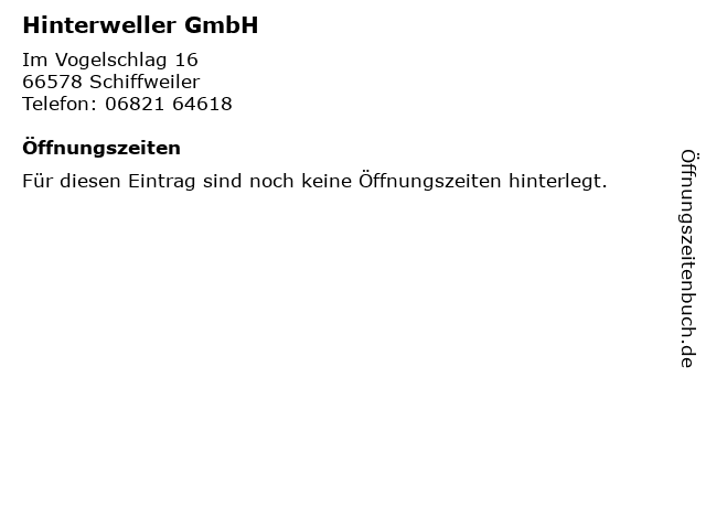| Öffnungszeiten Hinterweller GmbH in Schiffweiler anzeigen | |