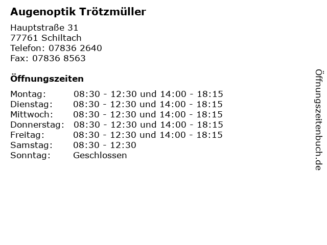 | Öffnungszeiten Augenoptik Trötzmüller in Schiltach anzeigen | |