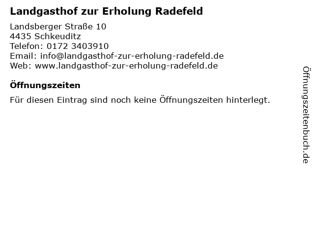 Landgasthof zur Erholung Radefeld anrufen | |