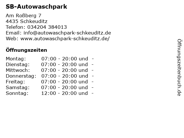 | Öffnungszeiten SB-Autowaschpark in Schkeuditz anzeigen | |
