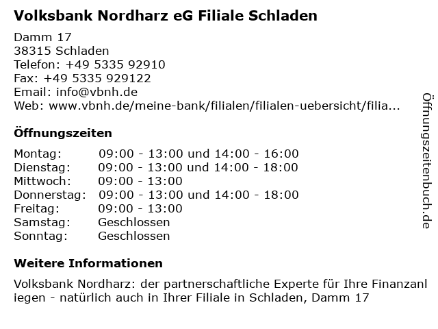 4 Volksbank Nordharz eG - Geschäftsstelle Liebenburg (Entfernung: 7,41 km) Lindenstr. 48a, 38704 Liebenburg 6 |