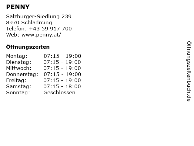 | Öffnungszeiten PENNY in Schladming anzeigen | |