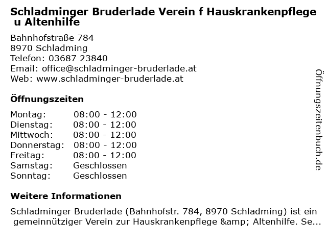 Branchen & Suchbegriffe zu Schladminger Bruderlade Verein f Hauskrankenpflege u Altenhilfe:altenhilfe, bruderlade, hauskrankenpflege, schladminger, verein |