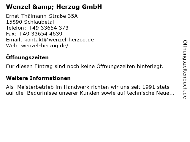 | Öffnungszeiten Wenzel & Herzog GmbH in Schlaubetal anzeigen | |