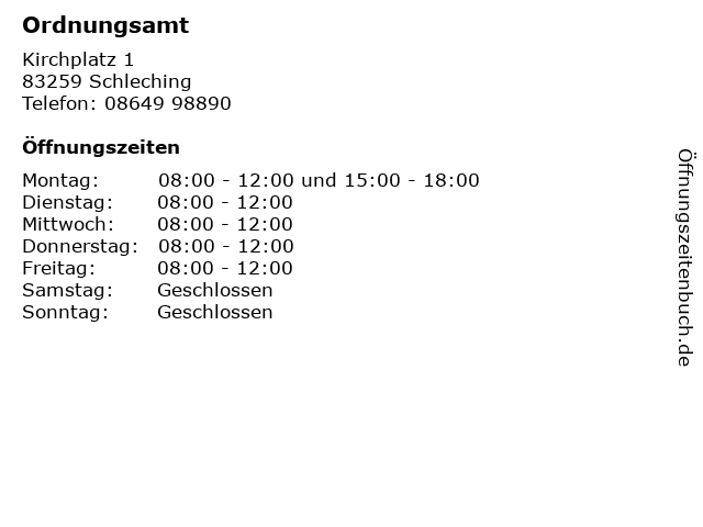 | Öffnungszeiten Ordnungsamt in Schleching anzeigen | |