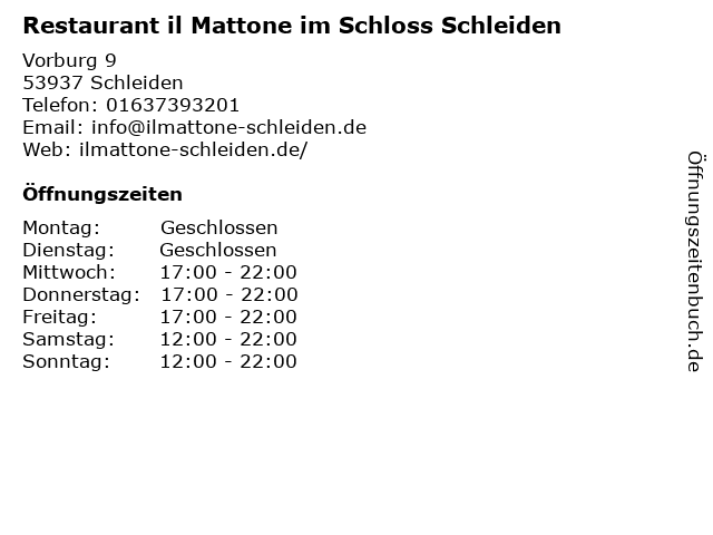 Branchen & Suchbegriffe zu Restaurant il Mattone im Schloss Schleiden:cateringbetriebe, gaststätten, il, mattone, restaurant, restaurants, schloss |