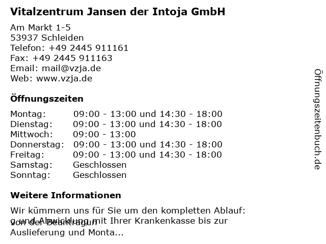 Branchen & Suchbegriffe zu Vitalzentrum Jansen der Intoja GmbH:bandagen, flachstrick-gummistrümpfe, intoja, jansen, krankenbetten, medizintechnik, orthesen, orthopädie, prothesen, reha, rollstühle, sanitätshaus, vitalzentrum |