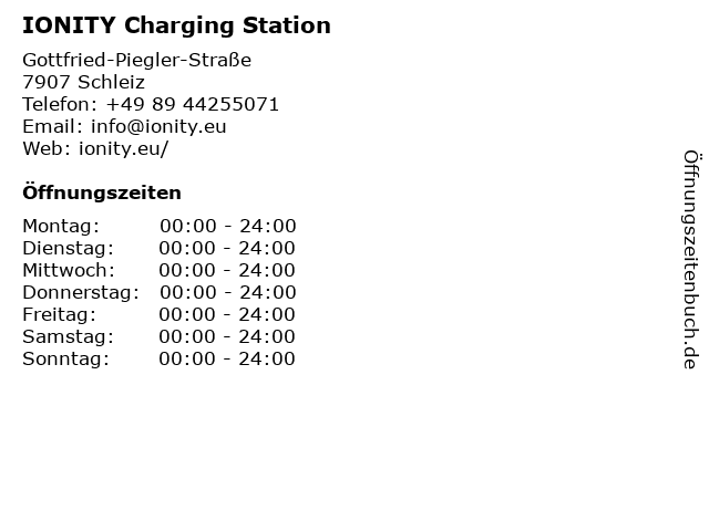 | Öffnungszeiten IONITY Charging Station in Schleiz anzeigen | |