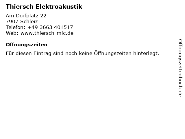Öffnungszeiten Thiersch Elektroakustik in Schleiz anzeigen