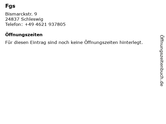 | Öffnungszeiten Fgs in Schleswig anzeigen | |