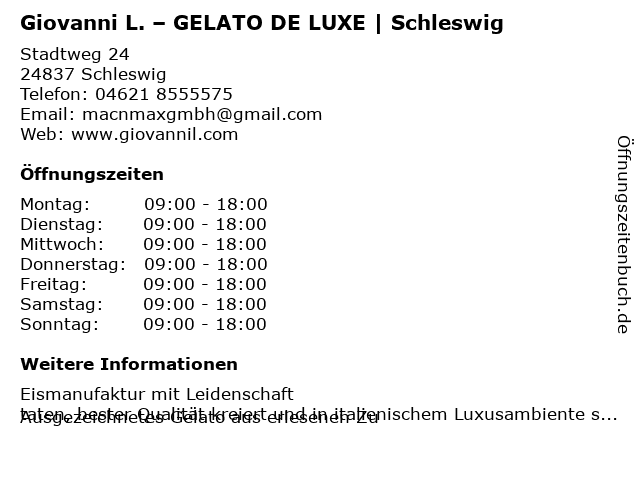 Branchen & Suchbegriffe zu Giovanni L. – GELATO DE LUXE | Schleswig:de, eisdiele, gelato, giovanni, l., luxe, – |