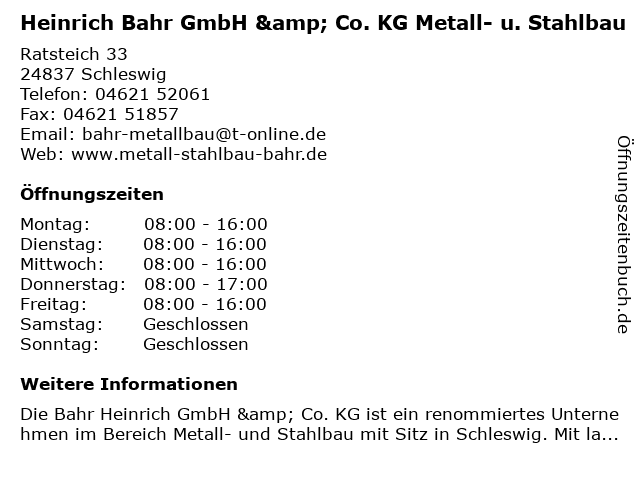 Branchen & Suchbegriffe zu Heinrich Bahr GmbH & Co. KG Metall- u. Stahlbau:bahr, heinrich, metall, stahlbau, u. |