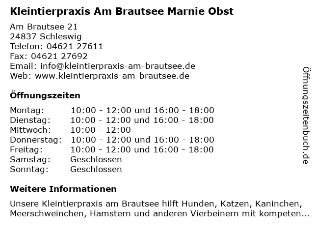Branchen & Suchbegriffe zu Kleintierpraxis Am Brautsee Marnie Obst:brautsee, kleintierpraxis, marnie, obst |