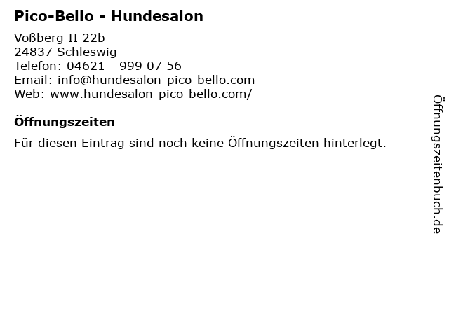 | Öffnungszeiten Pico-Bello - Hundesalon in Schleswig anzeigen | |
