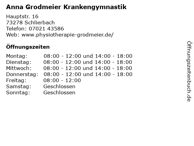 Branchen & Suchbegriffe zu Anna Grodmeier Krankengymnastik:anna, grodmeier, krankengymnastik, physiologen |