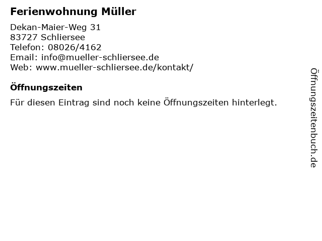 | Öffnungszeiten Ferienwohnung Müller in Schliersee anzeigen | |