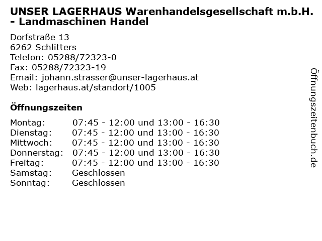 1 UNSER LAGERHAUS Warenhandelsgesellschaft m.b.H. - Werkstätte (Entfernung: 0,00 km) Dorfstraße 13, 6262 Schlitters 5 6 |