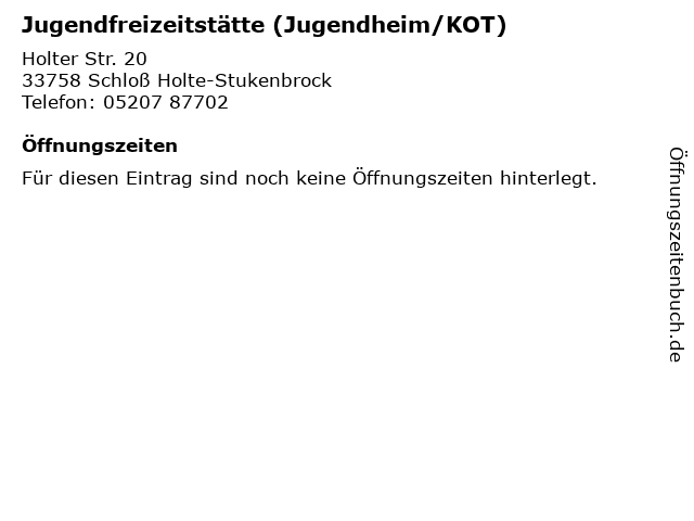 | Jugendfreizeitstätte (Jugendheim/KOT) anrufen | |