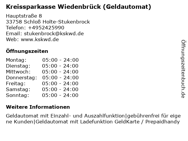 1 Kreissparkasse Halle-Wiedenbrück (Geldautomat) (Entfernung: 2,85 km) Kaunitzer Straße 24 - 28, 33758 Schloß Holte-Stukenbrock 2 Kreissparkasse Halle-Wiedenbrück (Geldautomat) (Entfernung: 3,36 km) Sender Straße 8, 33758 Schloss Holte-Stukenbrock 3 Kreissparkasse Halle-Wiedenbrück (Geldautomat) (Entfernung: 8,81 km) Paderborner Straße 414, 33415 Verl 4 Kreissparkasse Halle-Wiedenbrück (Geldautomat) (Entfernung: 10,86 km) Österwieher Straße 5, 33415 Verl 5 Kreissparkasse Halle-Wiedenbrück (Geldautomat) (Entfernung: 10,87 km) Wilhelmstraße 25-27, 33415 Verl 6 Kreissparkasse Halle-Wiedenbrück (Geldautomat) (Entfernung: 19,56 km) Am Pulverbach 36, 33803 Steinhagen |