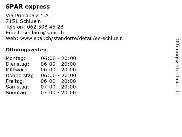 | Öffnungszeiten SPAR express in Schluein anzeigen | |