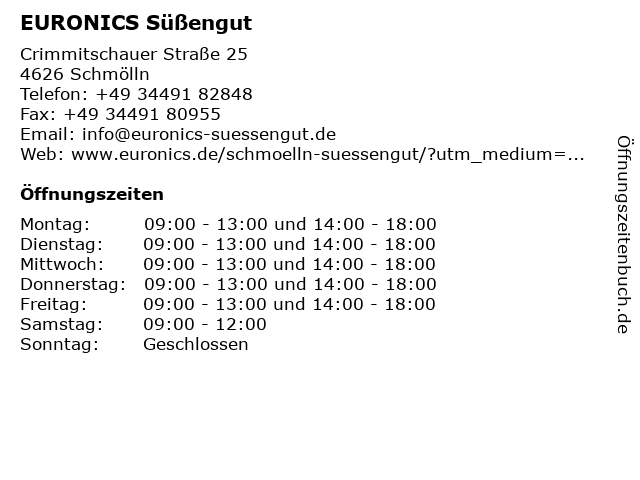 EURONICS Süßengut in Schmölln | Telefonnummer, Öffnungszeiten und Adresse