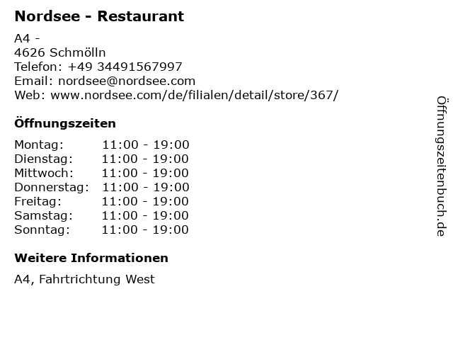 | Öffnungszeiten Nordsee - Restaurant in Schmölln anzeigen | |