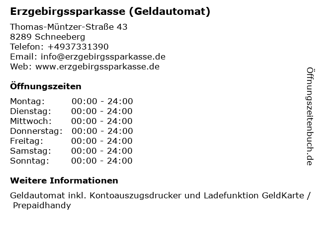 Erzgebirgssparkasse (Geldautomat) in Schneeberg: Telefonnummer, Öffnungszeiten und Adresse