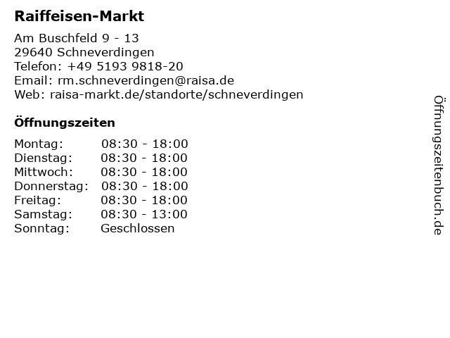 | Öffnungszeiten Raiffeisen-Markt in Schneverdingen anzeigen | |
