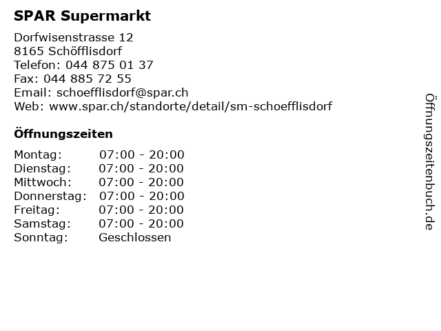 | Telefonnummer SPAR Supermarkt in Schöfflisdorf (044 875 01 37) anrufen | |