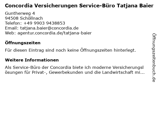 | Concordia Versicherungen Service-Büro Tatjana Baier anrufen | |