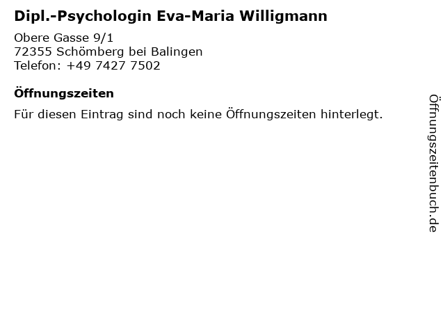 | Dipl.-Psychologin Eva-Maria Willigmann anrufen | |