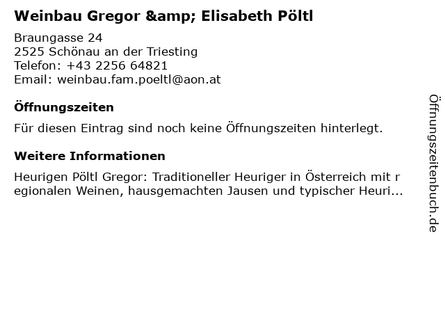 | Weinbau Gregor & Elisabeth Pöltl anrufen | |