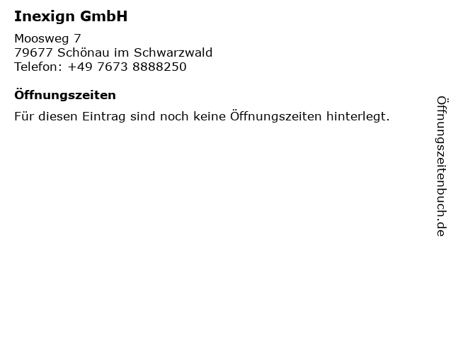| Öffnungszeiten Inexign GmbH in Schönau im Schwarzwald anzeigen | |