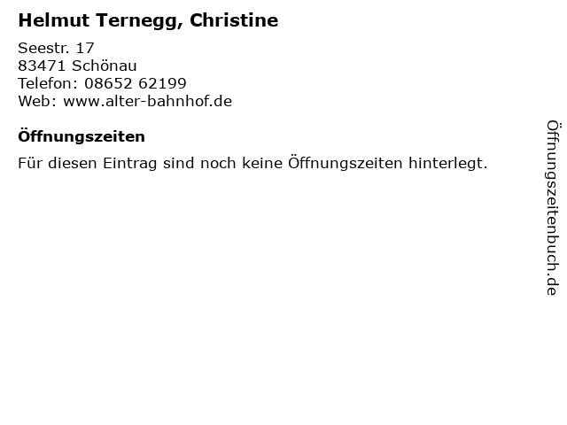 | Öffnungszeiten Helmut Ternegg, Christine in Schönau anzeigen | |