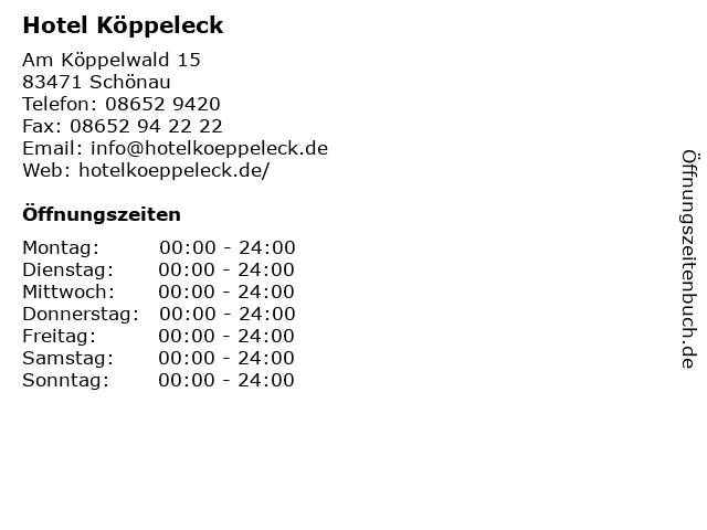 | Öffnungszeiten Hotel Köppeleck in Schönau anzeigen | |