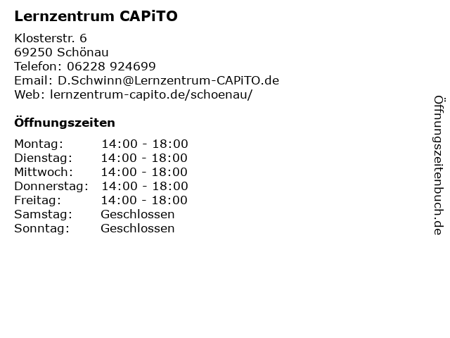 | Öffnungszeiten Lernzentrum CAPiTO in Schönau anzeigen | |