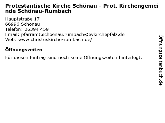 | Protestantische Kirche Schönau - Prot. Kirchengemeinde Schönau-Rumbach anrufen | |