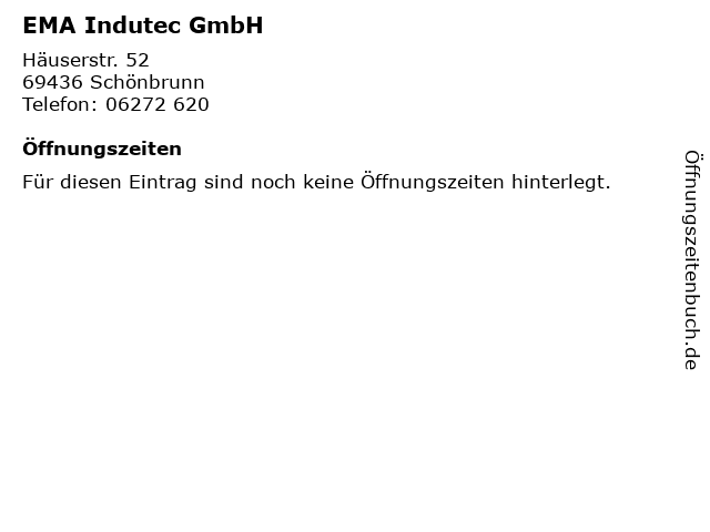 | Öffnungszeiten EMA Indutec GmbH in Schönbrunn anzeigen | |