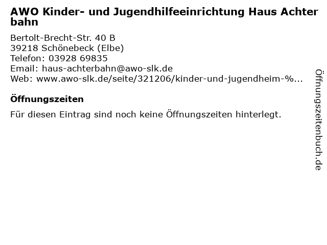 | AWO Kinder- und Jugendhilfeeinrichtung Haus Achterbahn anrufen | |