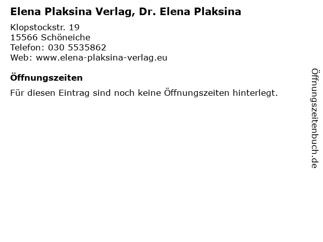 | Elena Plaksina Verlag, Dr. Elena Plaksina anrufen | |