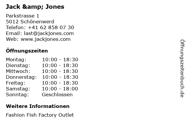 | Öffnungszeiten Jack & Jones in Schönenwerd anzeigen | |