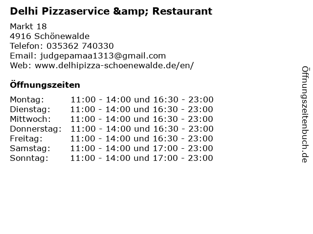 | Montag | 11:00-14:00 und 16:30-23:00 |