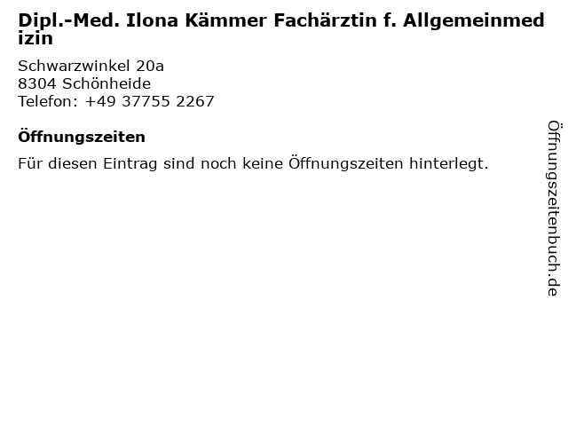 | Dipl.-Med. Ilona Kämmer Fachärztin f. Allgemeinmedizin anrufen | |