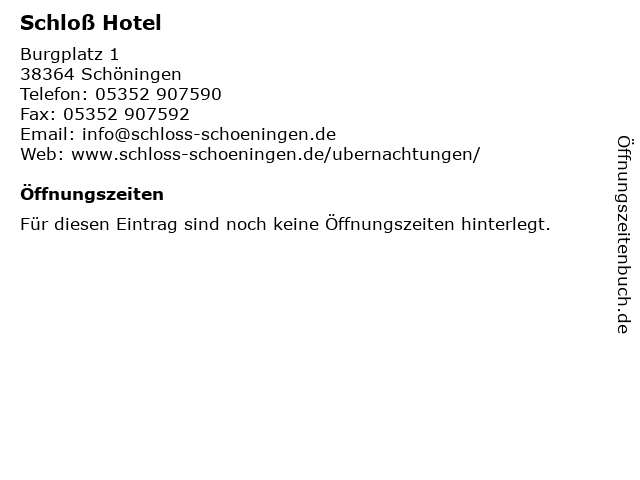 | Öffnungszeiten Schloß Hotel in Schöningen anzeigen | |