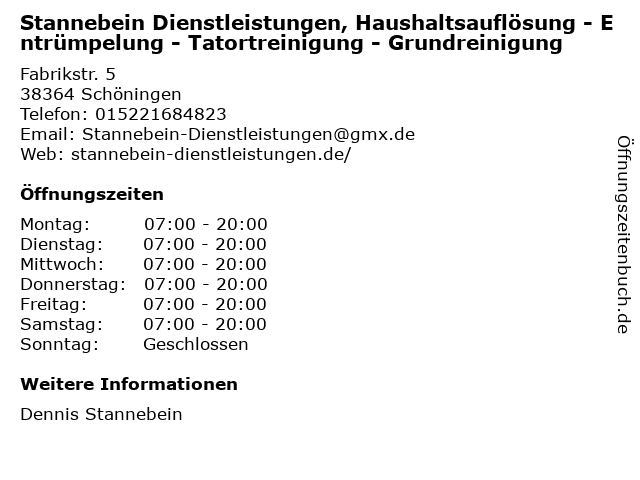Branchen & Suchbegriffe zu Stannebein Dienstleistungen, Haushaltsauflösung - Entrümpelung - Tatortreinigung - Grundreinigung:dienstleistungen, entrümpelung, grundreinigung, haushaltsauflösung, stannebein, tatortreinigung |