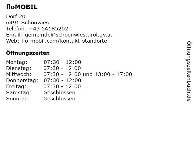 | Öffnungszeiten floMOBIL in Schönwies anzeigen | |