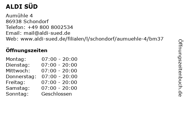 | Öffnungszeiten ALDI SÜD in Schondorf anzeigen | |