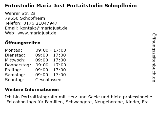 Branchen & Suchbegriffe zu Fotostudio Maria Just Portaitstudio Schopfheim:fotostudio, just, maria, portaitstudio |