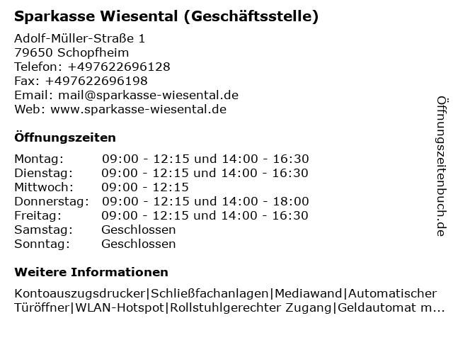 Branchen & Suchbegriffe zu Sparkasse Wiesental (Geschäftsstelle):geschäftsstelle, sparkasse, wiesental |
